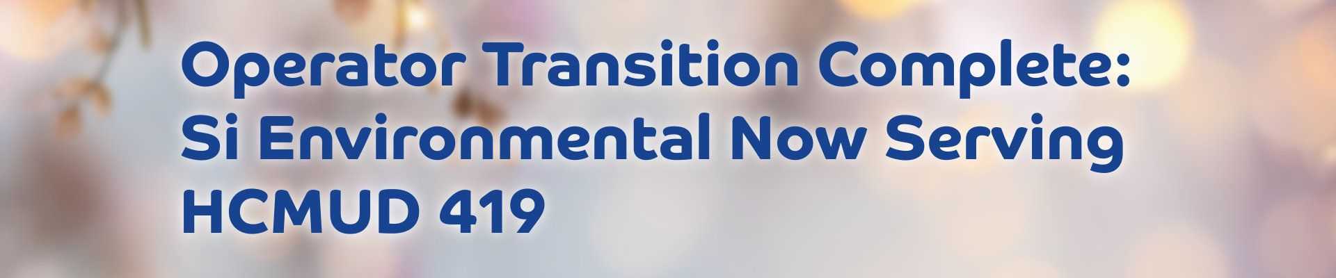 HCMUD 419 has officially completed its transition to a new water operator: Si Environmental.